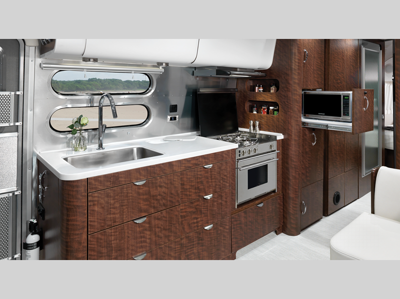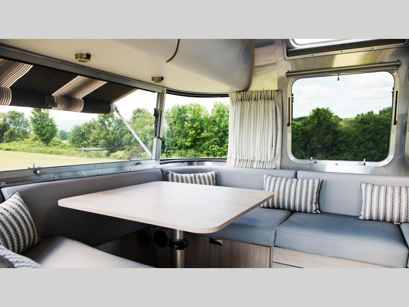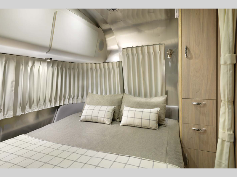 The interiors and exteriors of these Airstream Globetrotter travel trailers draw influences from all across Europe and will turn heads with the aerodynamic aluminum shell! Its the perfect statement-making complement with its crisp, clean lines and delicate neutral colors.