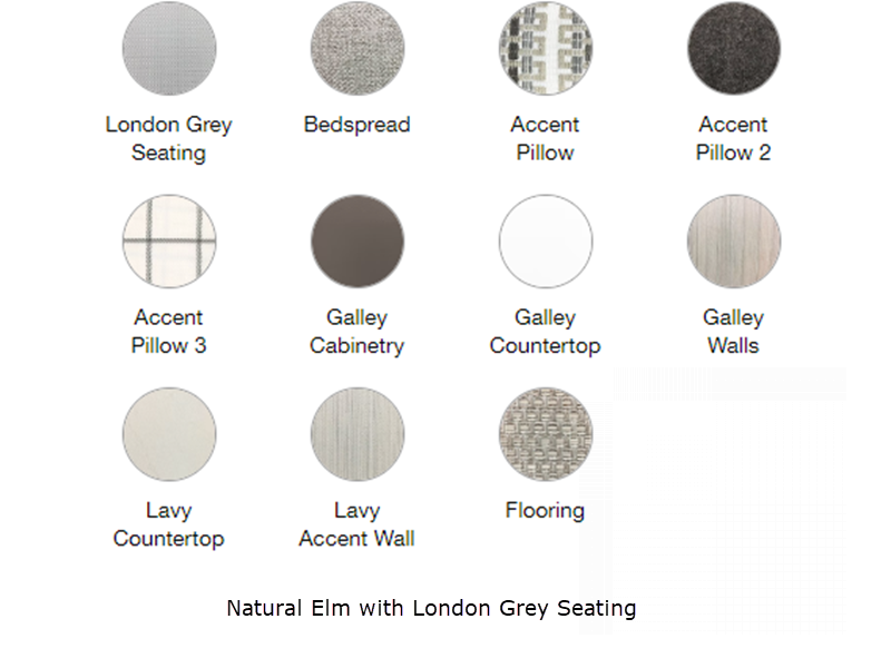Sleeps 4 Length 28 ft 2 in Ext Width 8 ft 6 in Ext Height 9 ft 7 in Int Height 6 ft 7 in Interior Color Dark Walnut with; Copenhagen Cream, Dublin Slate. Dark Elm with; London Grey, Barcelona Blue Hitch Weight 875 lbs GVWR 7600 lbs Dry Weight 6300 lbs Cargo Capacity 1300 lbs Fresh Water Capacity 39 gals Grey Water Capacity 39 gals Black Water Capacity 39 gals Tire Size ST225/75R15 Furnace BTU 30000 btu Available Beds RV Queen Refrigerator Type 12V w/Freezer Refrigerator Size 8 cu ft Cooktop Burners 3 Number of Awnings 1 LP Tank Capacity 30 lbs Water Heater Type Tankless On Demand LP AC BTU 15000 btu TV Info LR 27" 12V DC Smart TV, BR 24" 12V DC Smart TV Awning Info Powered Zipdee with Sunbrella Fabric; Rear & Roadside Window Awnings Axle Count 2 Number of LP Tanks 2 Shower Type Shower w/Seat Electrical Service 30 amp Similar Floorplans